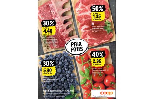 Profitez des actions de la semaine chez Coop, Exemple: 50% de rabais sur les steack de porc dans le cou