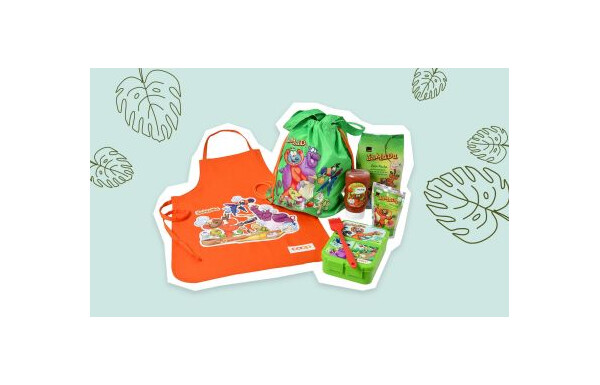 Les sacs contiennent un tablier de cuisine, un pinceau à pâtisserie, une boîte à lunch sympa et de délicieux produits JaMaDu
