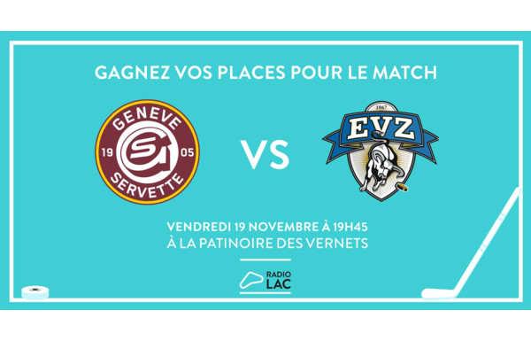 Gagnez vos places pour assister au match GSHC - EV Zug ce vendredi 19 novembre à 19h45 à la patinoire des Vernets