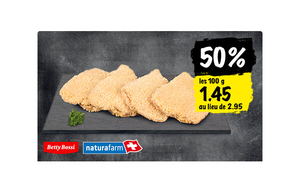 Profitez d'un rabais de 50% sur les Cordons-bleus de porc dans le cou Betty Bossi, Naturafarm, Suisse