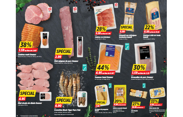 Profitez des actions de la semaine chez Denner, Exemple: 38% de rabais sur le jambon roulé