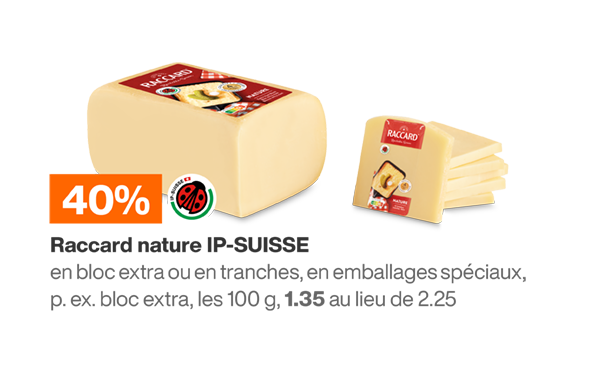 Profitez des actions de la semaine chez Migros, Exemple: 40% de rabais sur le Raccard nature IP-SUISSE